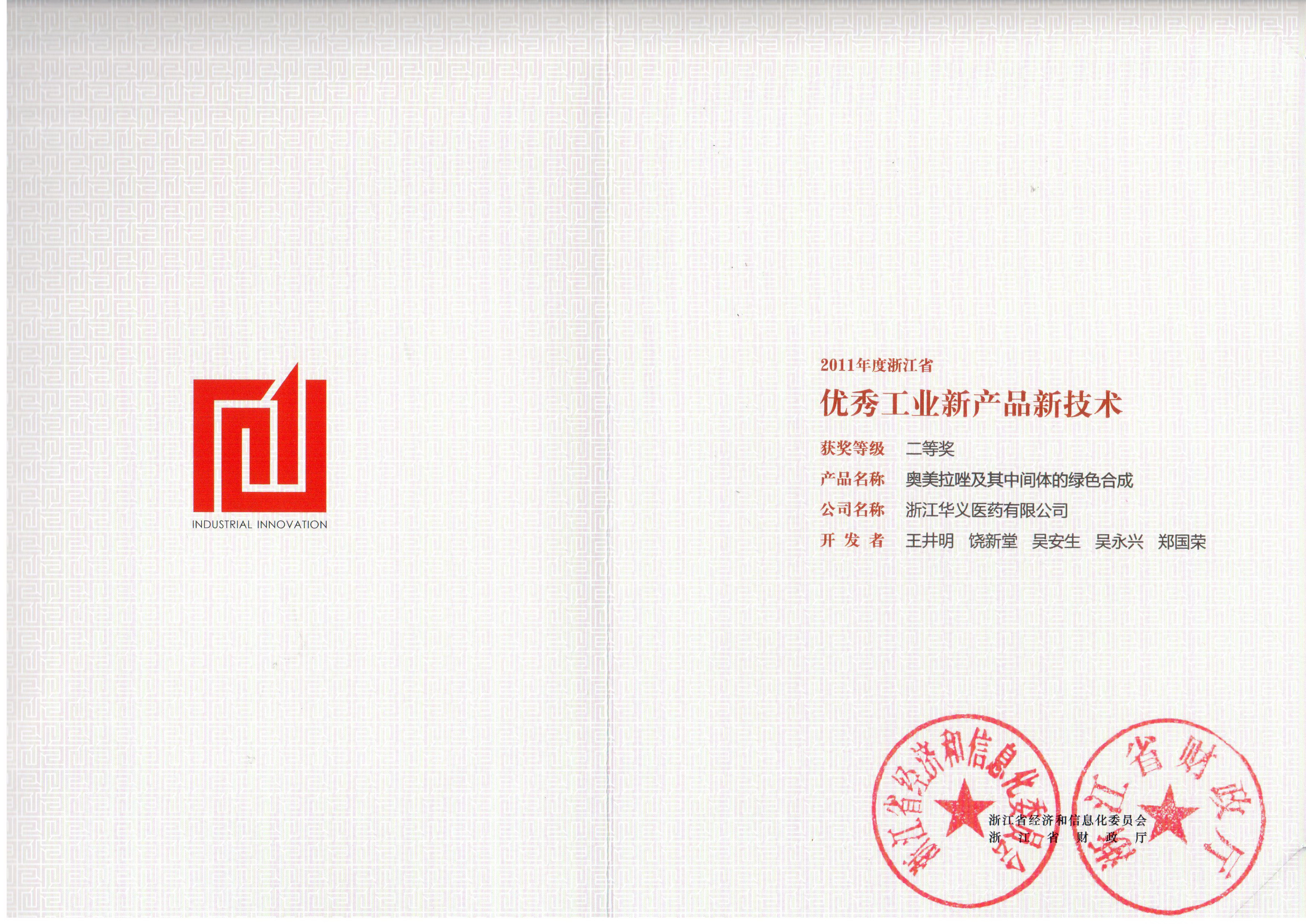 省級優(yōu)秀工業(yè)新產(chǎn)品-奧美拉唑