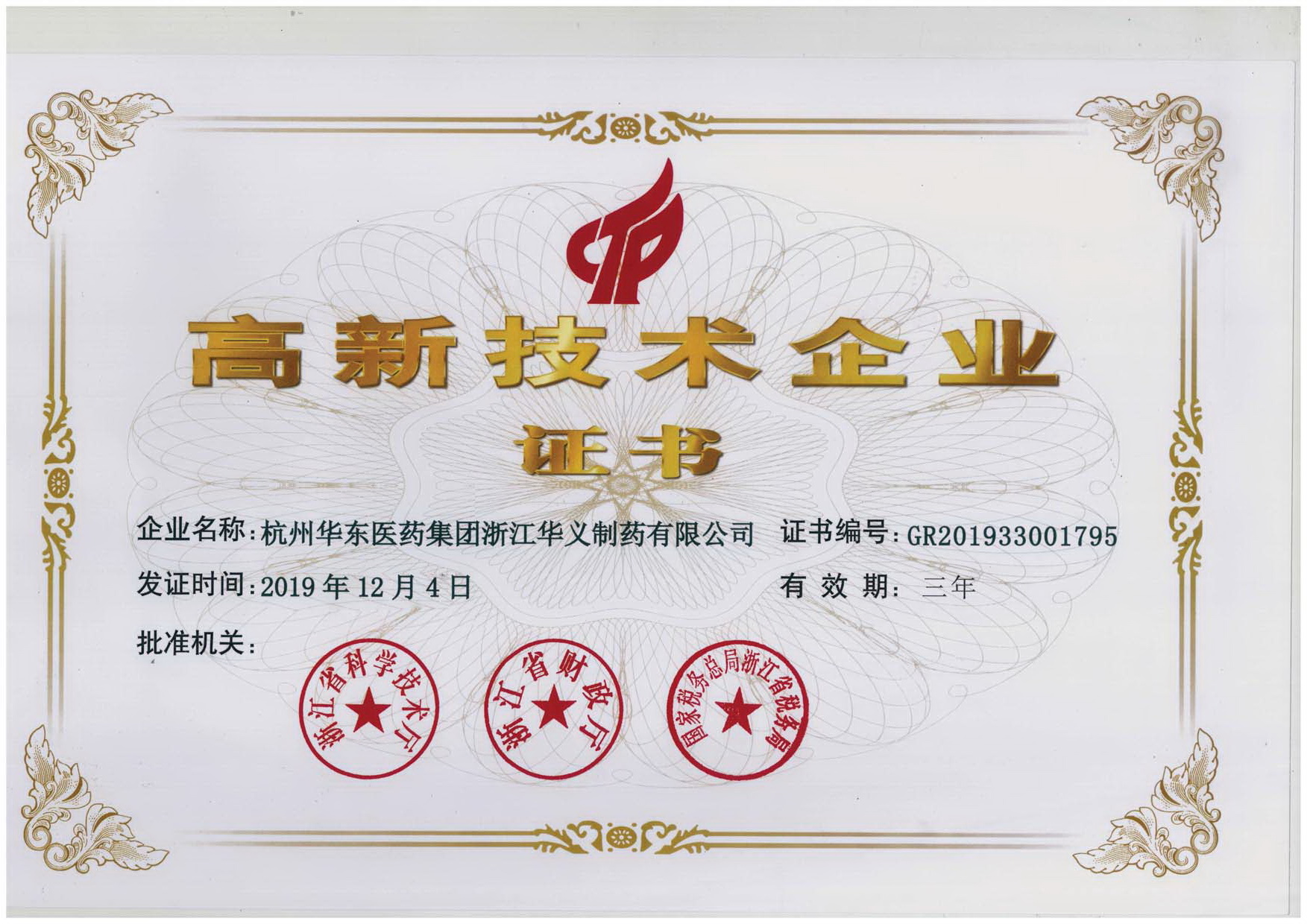 高新技術(shù)企業(yè)證書